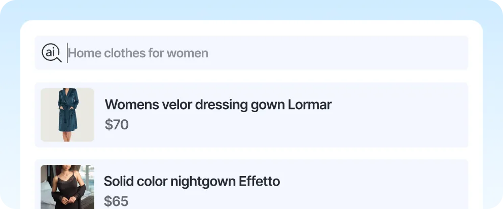 Our AI always finds the most relevant alternatives, even if the exact item isn’t available. It shows similar styles, colors, or categories to keep the customer engaged and reduce bounce rates.
