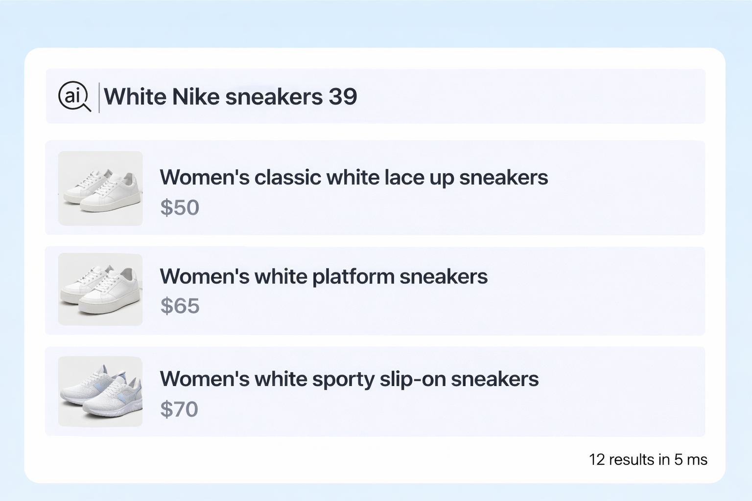 AI-powered search for shoe stores and marketplaces that helps shoppers find the right pairs by color, size, brand, style, and visual similarity — while also surfacing products that complete the look.