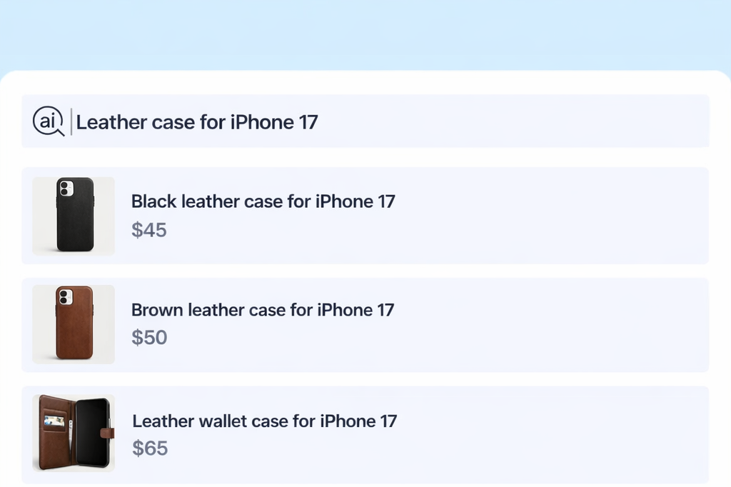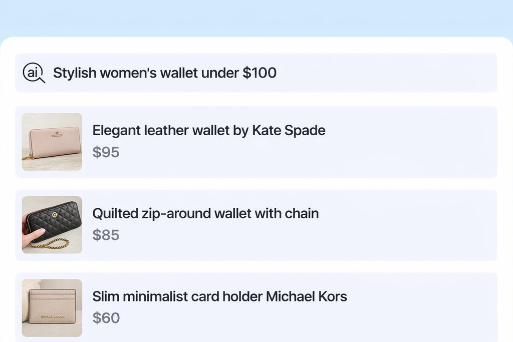 AI-powered search that helps shoppers find the right products by color, brand, style, material, and visual match — from bags and caps to wallets, watches, belts, and sunglasses.